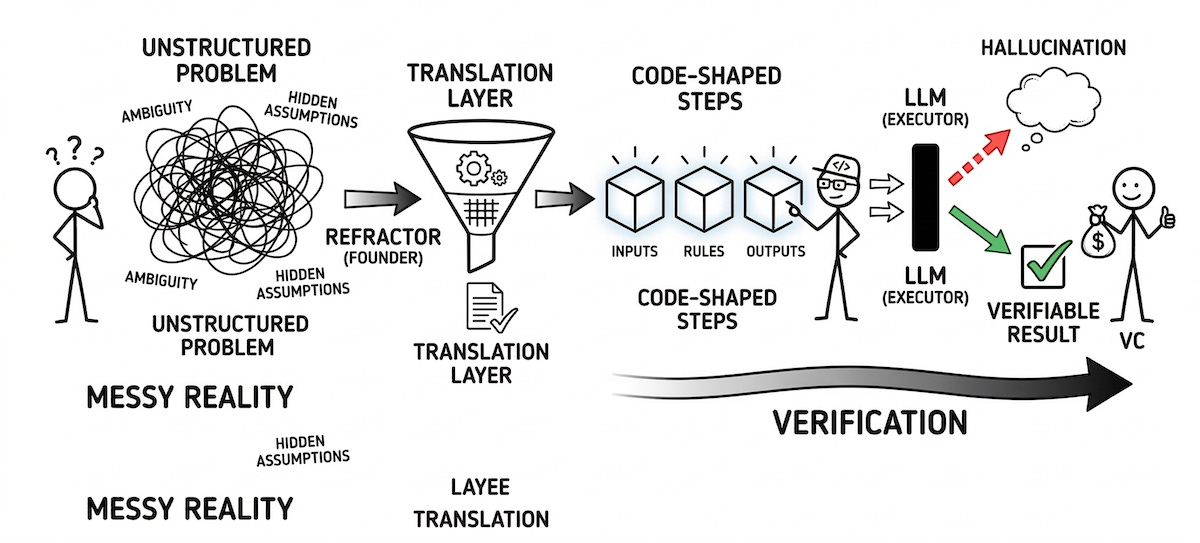 The frontier labs are building increasingly powerful reasoning engines. The startups with real leverage will be the ones that know how to turn fuzzy business problems into structured computational objects. The teams that understand this deeply will know how to redesign a workflow so the model can actually succeed.